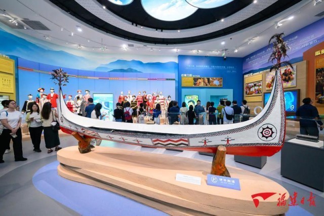 20日,平潭壳丘头遗址博物馆内,游客在“风好扬帆——南岛语族航海术与文化”展区了解南岛语族文化。福建日报记者 施辰静 摄