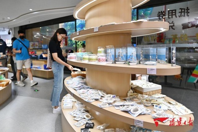 8月20日,平潭壳丘头遗址博物馆内,游客正在选购文创产品。福建日报记者 施辰静 摄