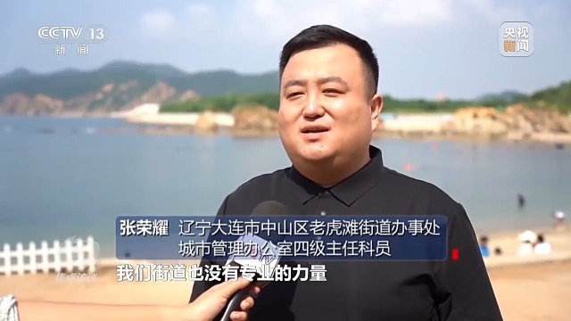 辽宁大连市中山区老虎滩街道办事处城市管理办公室四级主任科员 张荣耀:我们街道很难从根本上解决这个问题,街道没有专业的力量,只能组织工作人员和志愿者。有时候我们前脚刚清理完,没多久就接到投诉说又有垃圾了。