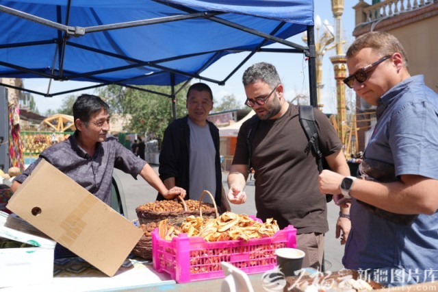 8月22日,研修班一行在哈密阿勒屯古街购买哈密瓜干。仲银堂摄
