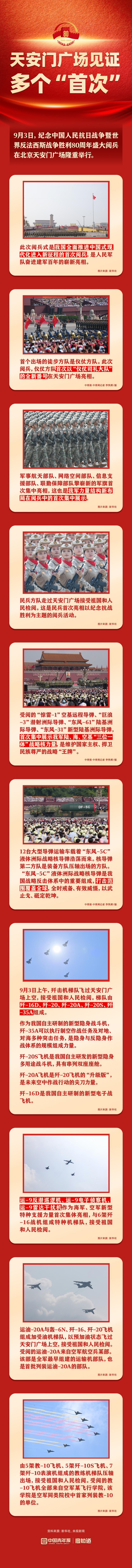 9月3日,纪念中国人民抗日战争暨世界反法西斯战争胜利80周年盛大阅兵在北京天安门广场隆重举行。本次阅兵活动实现多个“首次”,一起来看。