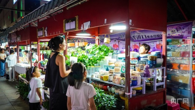 市民在夜市选购鲜花(央广网记者 魏文青 摄)
