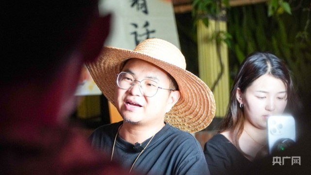 知名“三农”主播曲靖老村长正在老街直播(央广网记者 魏文青 摄)