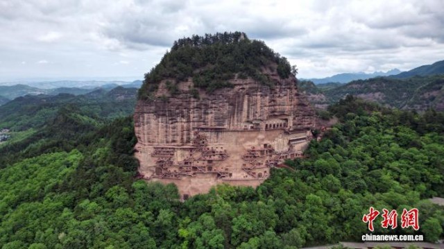 2024年6月4日,甘肃天水,航拍麦积山石窟。(资料图)九美旦增 摄