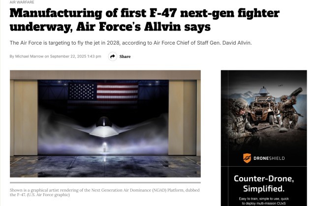 在当地时间9月22日举行的美国空军和太空部队网络会议上,阿尔文简要介绍了“下一代空中优势”计划的进展情况。“F-47将和企划中的其他武器系统一起,确保我们的主导地位。”他着重提到,“我们必须更迅速地行动……团队致力于在2028年将第一架F-47送上天空……在短短几个月内,波音公司已开始建造第一架飞机。”