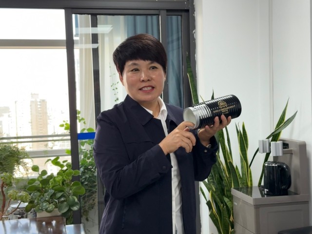 马敬向记者介绍团队自主研发的大口径玄武岩纤维BCCB管道。(王文倩 摄)