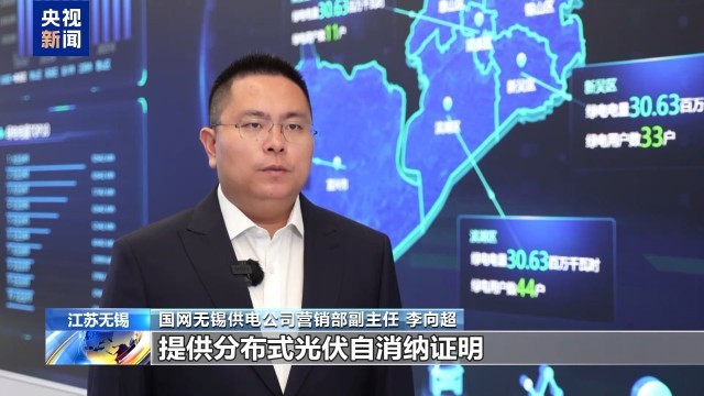 国网无锡供电公司营销部副主任 李向超:我们也积极参与其中,为两轮车生产制造企业提供分布式光伏自消纳证明,精准核算企业清洁能源碳减排贡献。
