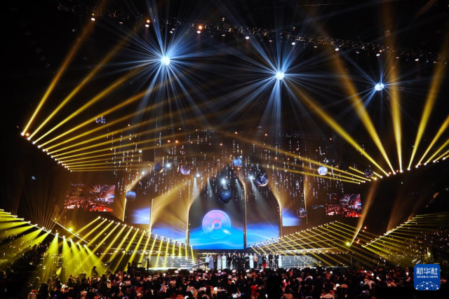 这是9月28日拍摄的晚会现场。新华社发(王申摄)