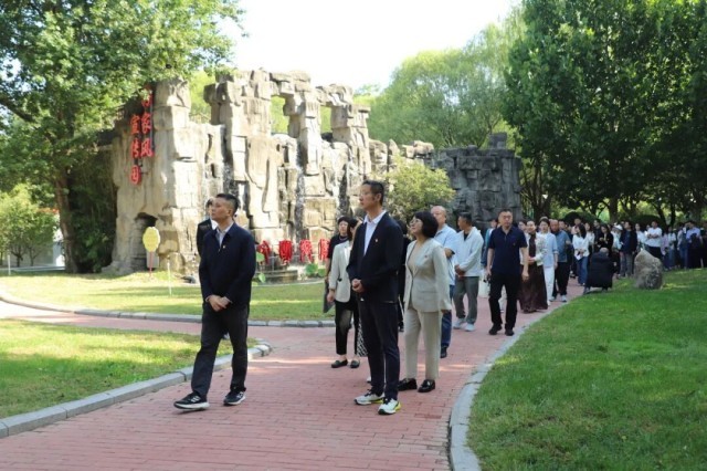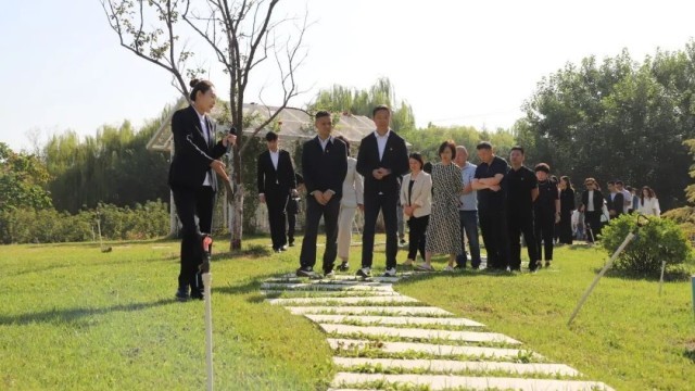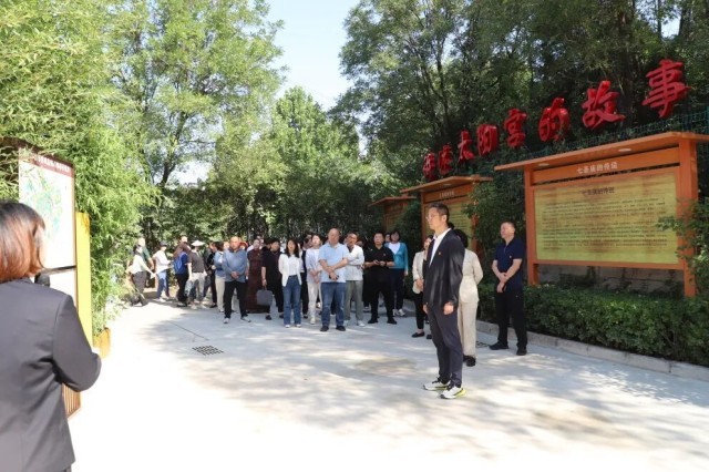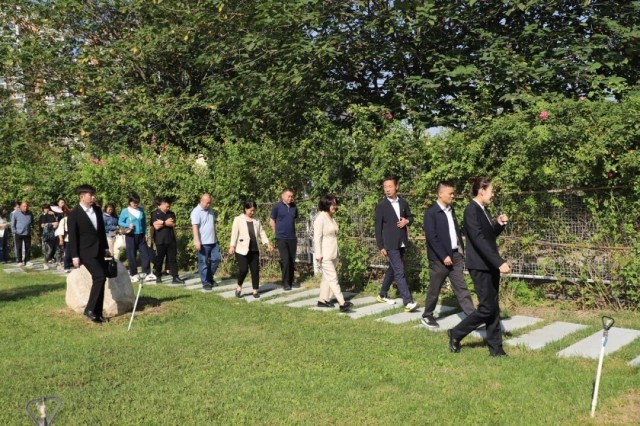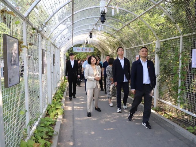 仪式结束后,与会人员在讲解员的引导下,从寓意“家风乃国风之本”的入口“基石”景观点出发,沿着好家风廉洁文化园(二期)精心规划的“一轴八印”脉络开启了本次“清风之旅”。沿途依次经过“柳憩思廉”——“廉漪小筑”——“步步生廉”的汀步石道,于诗词石刻中体会文人墨客的清廉风骨,在记录太阳宫乡74年发展历程的石板路上,回顾家乡发展,感受廉洁文化的熏陶。