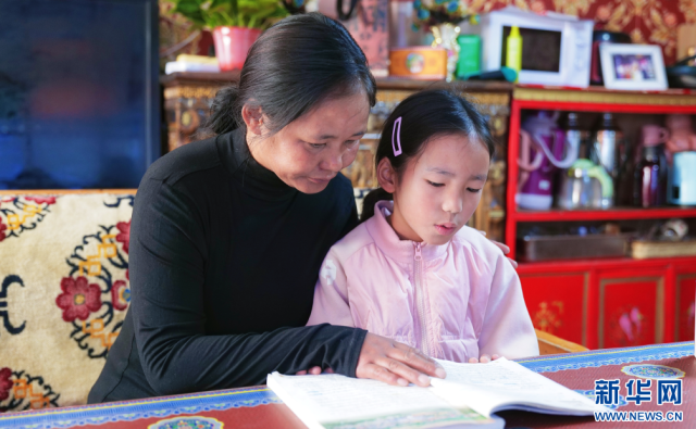 图为尼吉在陪小女儿读书(9月28日摄)。新华网 柑丹鸯琦摄