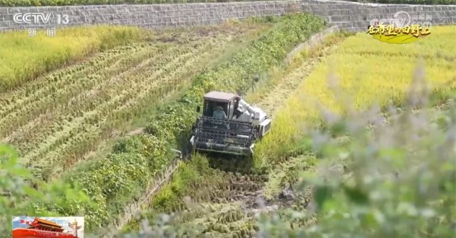 央视网消息:金秋十月是收获的季节,在四川广元昭化区,万亩水稻正迎风摇摆,当地抢抓农时忙收割,稻田里阵阵稻香弥漫。