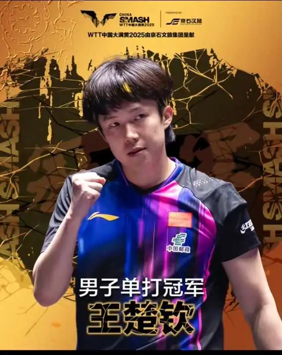 △王楚钦夺得男单冠军海报。WTT世界乒联供图
