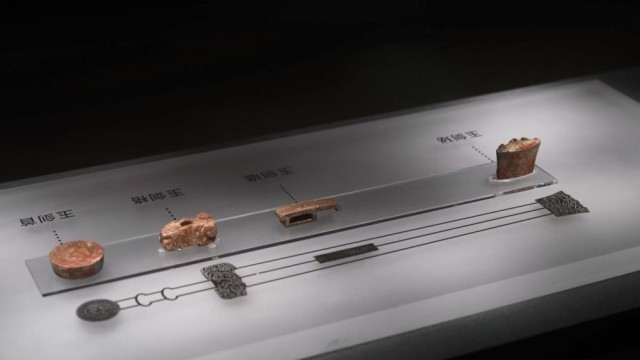图为赵眜墓中出土的丝缕玉衣复制品。新华社记者 袁慧晶 摄