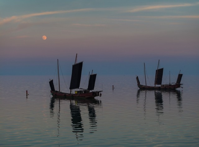 △浙江湖州,长兴县太湖明月高悬。(图片来源:视觉中国)
