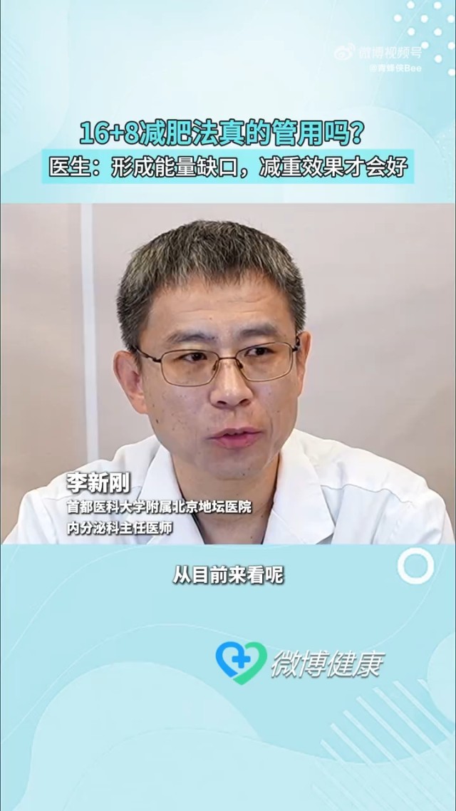 首都医科大学附属北京地坛医院内分泌科主任医师李新刚接受青蜂侠采访时表示,从健康减重角度来看,“16+8”饮食模式因控制进食时间减少食物摄入,被不少网友采用,其遵循16小时不进食、8小时进食的规律。但中医“中庸”“过犹不及”的理念提示,进餐时间不宜过短或过长,建议保持在10小时以上。对此,医生提议可尝试“5+2”饮食模式,即一周7天内,5天正常饮食,非连续的两天相对减少热量摄入。专业指南推荐,女性这两天热量摄入应小于600kcal,男性尽量小于800kcal,也可通过代餐方式实现,以此形成周能量缺口,助力体重管理。