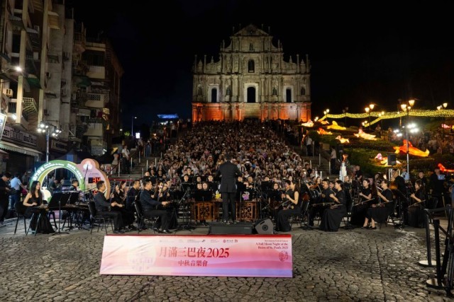 10月6日拍摄的在大三巴牌坊举行的“月满三巴夜2025”中秋音乐会。新华社发(张金加摄)