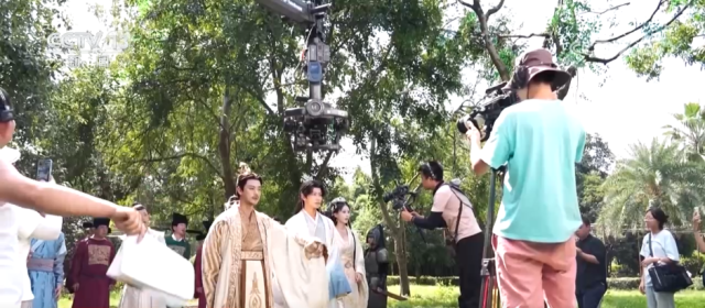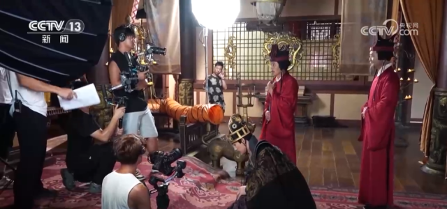 这几天,位于浙江金华的横店影视城最高气温超过35℃。各大片场里,短剧拍摄更是一片火热。记者在横店影视城华夏文化园景区内看见,有两部短剧正同时拍摄,剧组各占一块地方,相隔几百米左右,灯光、摇臂......各种设备应有尽有,工作人员默契配合,拍摄井然有序。