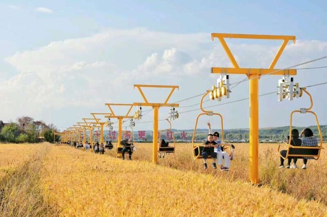 这个假期,延边州的光东村一望无际的水稻,迎来了收割季节,也吸引了一大波研学热潮。小学生们走进田间,学习割稻、捆扎技艺。同时,多种特色稻田游乐场项目吸引游客排起长队。稻田小火车、低空缆车稻田拖拉机、稻田坦克等,是孩子们最喜欢的项目。