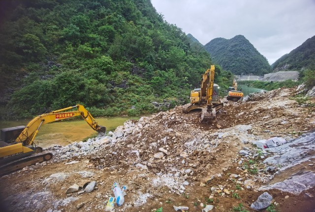 另一边,德保县多睦村多旁水库的渗水点处置任务同样紧迫。由于现场无陆路通行条件,且封堵体需实现双面防渗,抢险难度极大。救援人员首先拼组应急动力舟桥,成功打通水上运输通道,确保重型设备与抢险物资能够顺利送达作业面;同时,针对性制定“水泥毯+黏土”复合防渗封堵方案,目前正加紧筹备物资,全力推进垭口段封堵准备工作。为加快抢险进度,救援人员采取“两班倒”的工作模式,昼夜不间断投入封堵作业,全力以赴争取尽快完成任务。截至20日8时,该水库戗堤填筑已累计完成600方,抢险工作稳步推进。