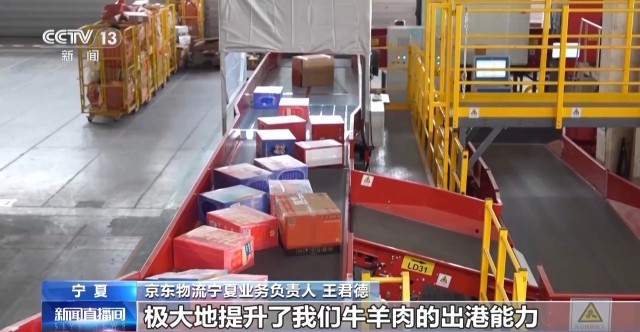 京东物流宁夏业务负责人 王君德:近期我们牛羊肉的单量同比提升超过30%。从流向上来看,北上广深,江苏、山东是主要的牛羊肉消费地。目前我们通过新增升级改造了三条智能分拣线,极大地提升了牛羊肉的出港能力,牛羊肉分拨的自动化率提升超过20%。
