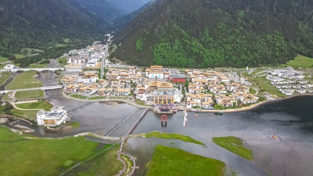 鲁朗国际旅游小镇鸟瞰图。本报记者 刘枫 谢筱纯 胡文 摄