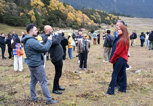 2025·中国西藏发展论坛中外嘉宾在鲁朗高山牧场参观。 本报记者 王敏 摄