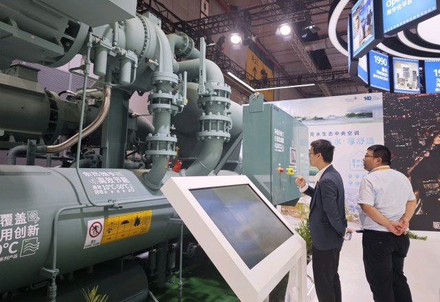 实际上,在“含绿量”急需提高的工业领域,热泵与余热回收利用是节能降碳的关键。“工业领域的产业绿色转型,降低能源消耗是非常重要部分。热泵就像‘热能搬运工’,只需少量电能,就能从空气、水等低温热源中高效提取热量,输送到需要高温的地方,替代燃煤、燃气等传统供热方式。”连续8年来到进博会,江森自控工业冷冻及高温热泵产品线管理经理邓伟鹏博士见证过多代余热回收技术与设备亮相进博窗口。