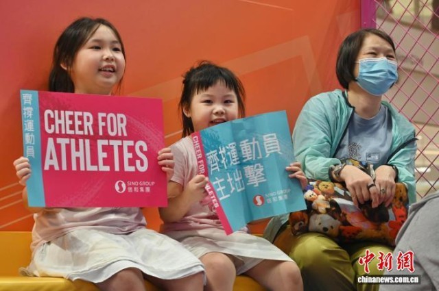11月9日晚,香港民众在香港一家商场内观看第十五届全国运动会开幕式的直播。图为小女孩观看直播,支持运动员。 中新社记者 李志华 摄