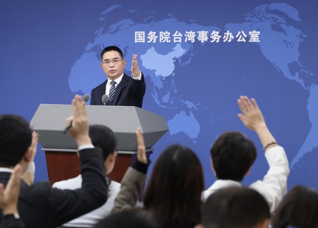 11月12日,国务院台湾事务办公室在北京举行例行新闻发布会,发言人陈斌华就近期两岸热点问题回答记者提问。视觉中国供图