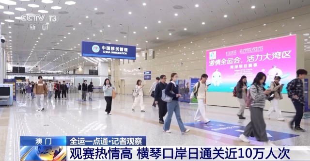 总台中国之声体育评论员管月琦介绍,横琴口岸开通了“全运会专用通道”,为运动健儿们快速通关保驾护航。澳门赛区这次要举办不少热门赛事,现在持有“琴澳旅游团”和“一签多行”签注的旅客,可经横琴口岸多次往返澳门和横琴。