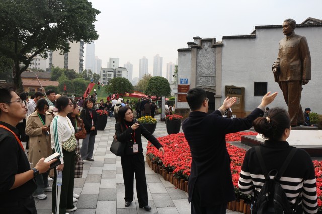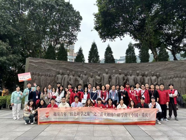 在中越两国老一辈革命家战斗、工作和生活过的地方,越南青年驻足、聆听、合影……亲身感受属于这座山城的红色记忆,探寻革命先驱在川渝大地留下的足迹。