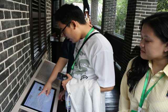 11月13日,重庆,参访桂园的越南青年通过互动设备了解相关历史知识。中青报·中青网记者 张昊天/摄