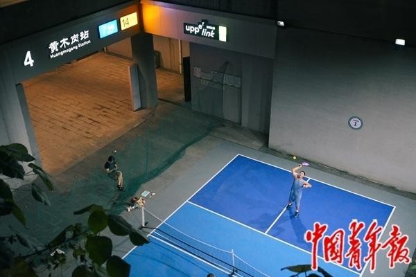 11月9日,广东深圳,黄木岗地铁运动馆,一名儿童在打匹克球。这里是全国首个设在地铁站内的运动馆。中青报·中青网记者 田嘉硕/摄