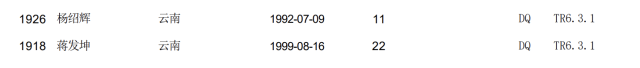 十五运会男子10000米成绩公告中,蒋发坤和杨绍辉二人因违反“TR6.3.1”被取消成绩。成绩公告截图
