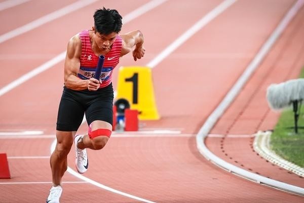 11月20日,广东广州,十五运会田径男子4x100米接力决赛,“苏神”苏炳添职业生涯最后一舞。视觉中国供图