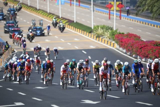自行车公路赛的选手们通过横琴大桥进入横琴粤澳深度合作区。 南方+ 姚志豪 拍摄