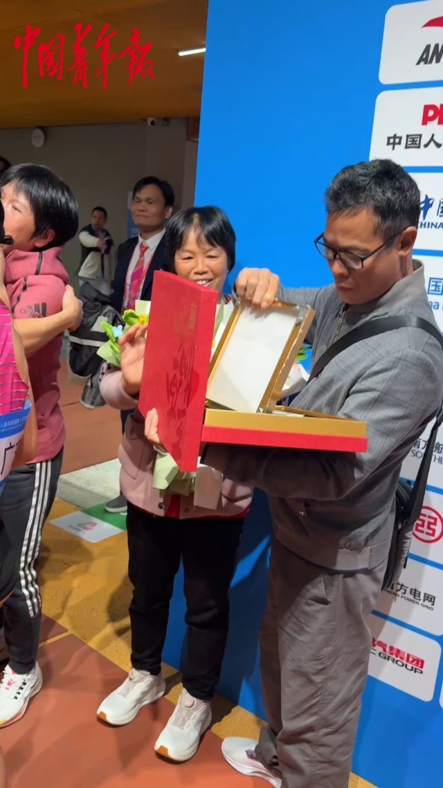 赛后,莫家蝶的父母带着精心准备的礼物现身运动员通道,他们表示,来之前并没有告诉女儿,想要给她一份惊喜。“我想哭!”一向心直口快的莫家蝶看到父母后说:“但我要忍住。”