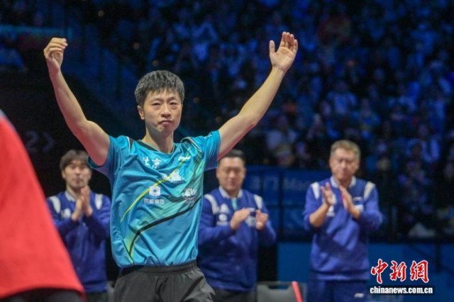 11月20日,第十五届全国运动会乒乓球成年组男子团体金牌赛在澳门银河综艺馆举行。图为北京队选手马龙在赛事中。 中新社记者 陈永诺 摄