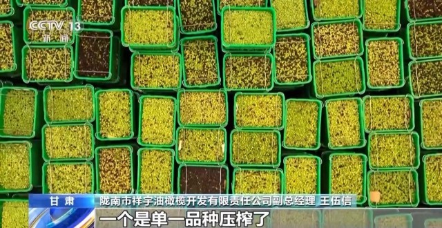 陇南市祥宇油橄榄开发有限责任公司副总经理 王伍信:现在我们采取订单预约的收购方式,定制了几万个果筐,发放果筐再去采摘,保证果子的出油率、品质和农户的利益不受伤害。