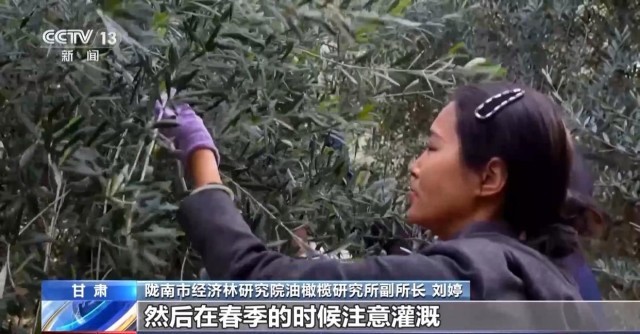 陇南市武都区两水镇两水村农户 庞云霞:以前我们这边的山都是光秃秃的,这个橄榄树比较耐旱,可以绿化。我们现在线下线上都在卖,销售的渠道也更多了,通过橄榄树来致富,让日子过得更加红火。
