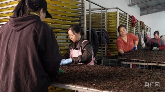 工人们将洗净的紫菜铺平以便后续烘干(央广网见习记者 于东冉 摄)