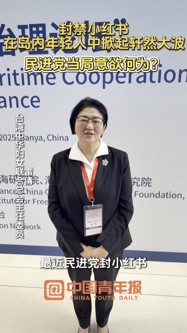 中国青年报客户端三亚12月11日电(中青报·中青网记者 马子倩)台湾中华妇女联合总会主任委员、海南大学“一带一路”研究院研究员雷倩12月10日在海南三亚出席第六届“海洋合作与治理论坛”期间接受中青报·中青网记者采访时表示,台湾民进党当局封禁小红书在岛内年轻人中掀起轩然大波。她质问民进党当局“怎么能做这样的事”,并指出民进党妄图借此举斩断两岸年轻人之间的密切往来,拉大台湾年轻人与大陆的距离。