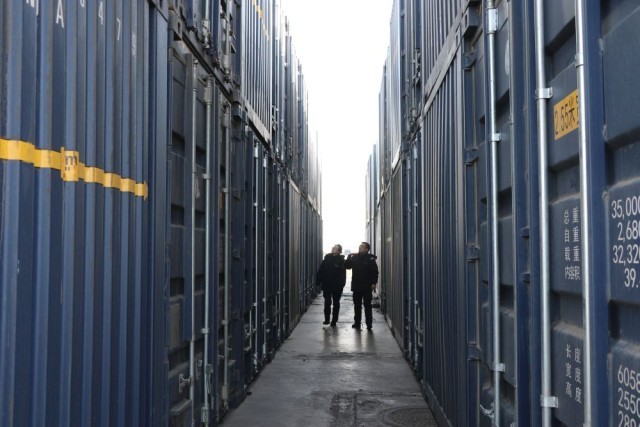 乌拉特海关关员巡查监管作业场所进口煤炭仓储情况。新华社发
