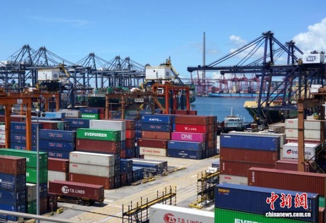 香港特区政府财政司司长陈茂波11月16日表示,2025年前三季度香港商品出口按年实质显著增长11.3%。图为香港葵涌货柜码头资料图。中新社记者 张炜 摄