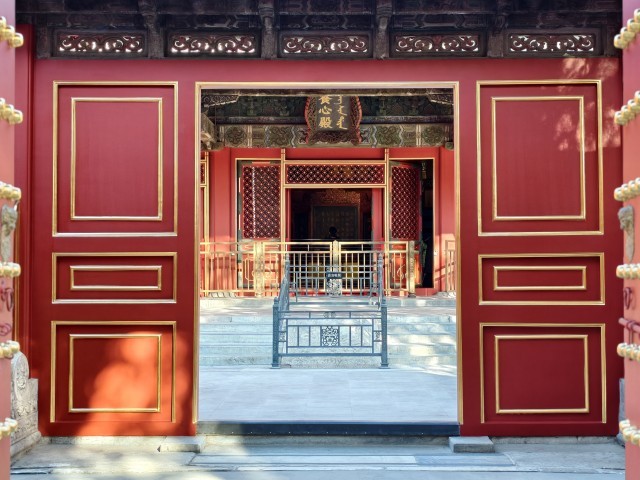 养心殿的前殿与后殿以工字廊相连,形成“工”字形制。阳光透过树影洒落其间,养心殿区建筑群历经修缮后保存完好。本次重新开放的区域,实行免预约政策,观众只需凭故宫博物院门票,即可直接参观。