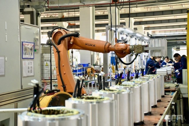 在宁德时代电机的智能制造车间,机械臂灵活挥舞,新能源电机的核心部件在生产线上快速组装。