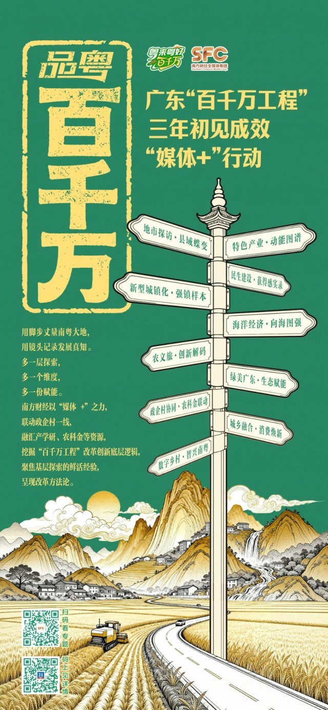 这些散落在南粤大地的发展故事,被一个共同的事业紧密串联——“百县千镇万村高质量发展工程”(以下简称“百千万工程”)。这场发轫于攻坚“最大短板”,覆盖122个县(市、区)、1612个镇(街)、2.65万个村(社区)的实践,学习运用“千万工程”经验,与广东省情深度融合,将中央精神融入县镇村肌理,转化为破解城乡区域协调发展的实践动能。
