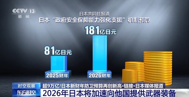 报道称,根据预算草案,“政府安全保障能力强化支援”机制的规模将被大幅扩充,预算金额将达到181亿日元(约合8.15亿元人民币),较2025财年的81亿日元大幅上涨。