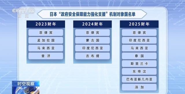 2023年4月,日本设立“政府安全保障能力强化支援”机制,以发展中国家为所谓支援对象,提供卫星通信系统、警戒监视雷达、巡逻艇以及帮助建设军民共用港口等。