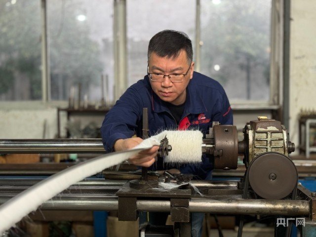 胡爽在车间制作工业抛光刷(央广网记者 刘畅司晨 摄)